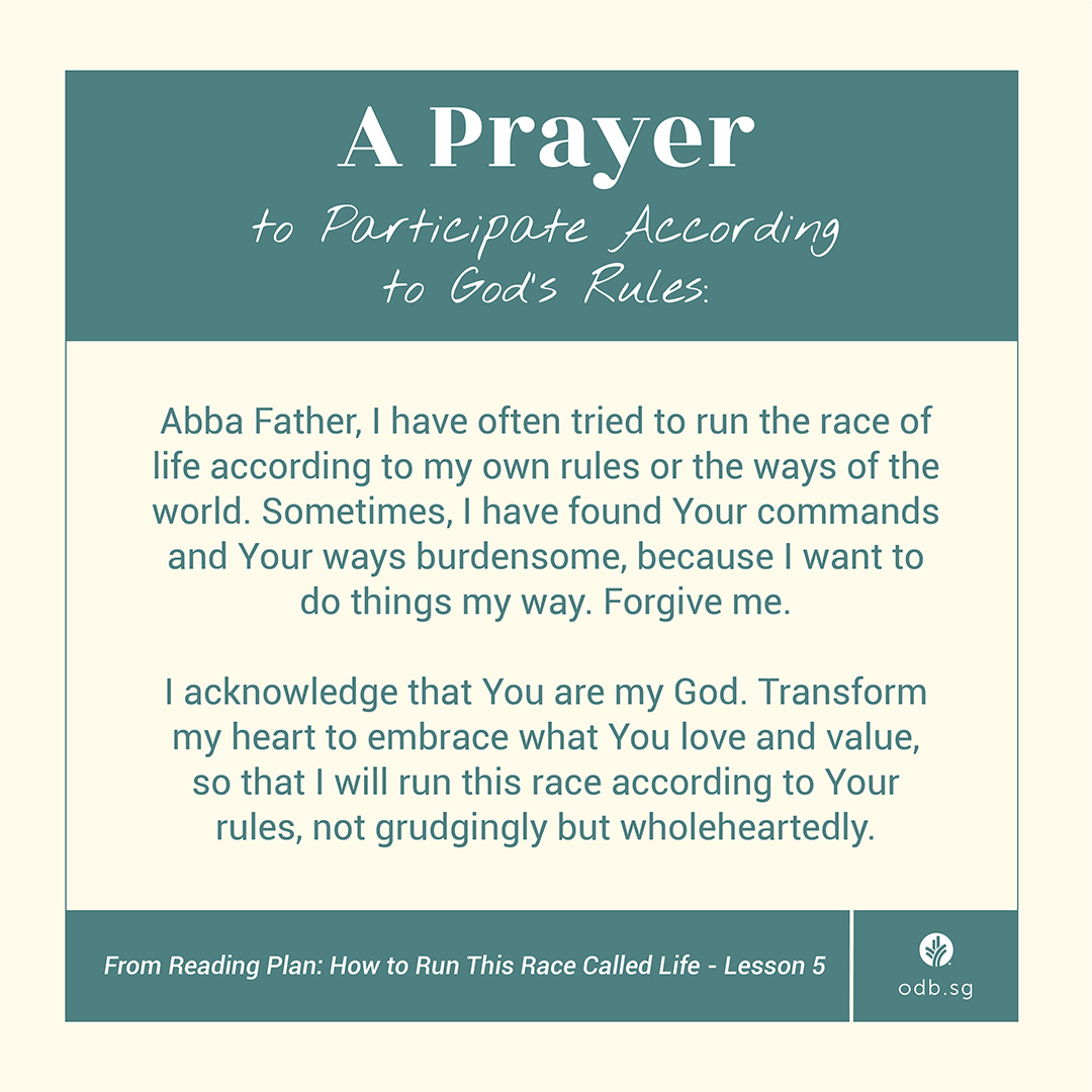 Abba Father, I have often tried to run the race of life according to my own rules or the ways of the world. Sometimes, I have found Your commands and Your ways burdensome, because I want to do things my way. Forgive me.
